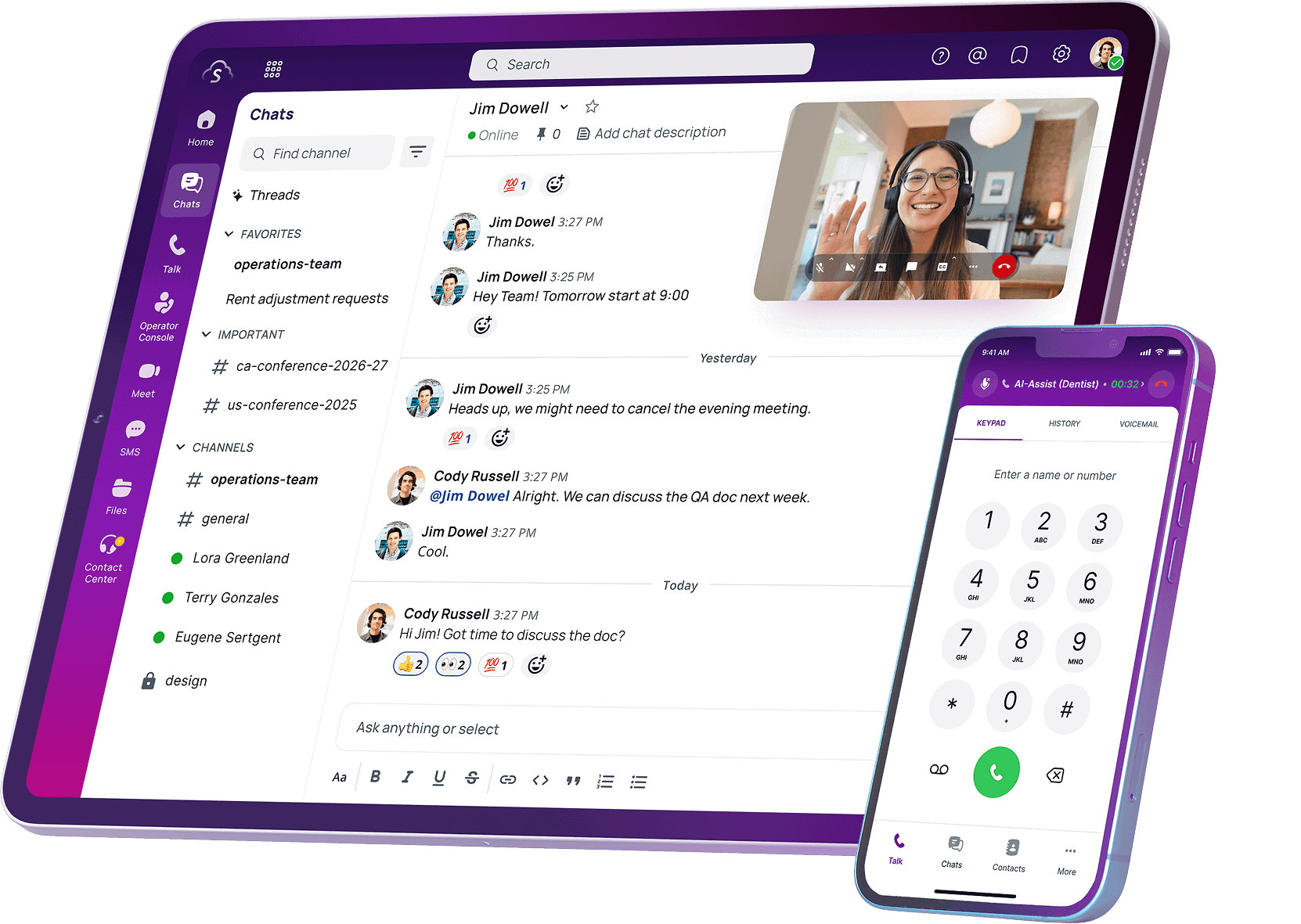 Connect your teams with a unified place for voice, video, chat, files, and much more.